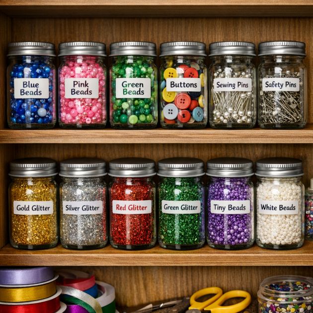 Crafters know the struggle of keeping tiny supplies organized. Spice jars are an excellent solution for storing beads, buttons, pins, and glitter. Their clear glass makes it easy to see the contents, while the lid ensures everything stays neatly contained. Group the jars by category or color and store them on a shelf or in a drawer for easy access.