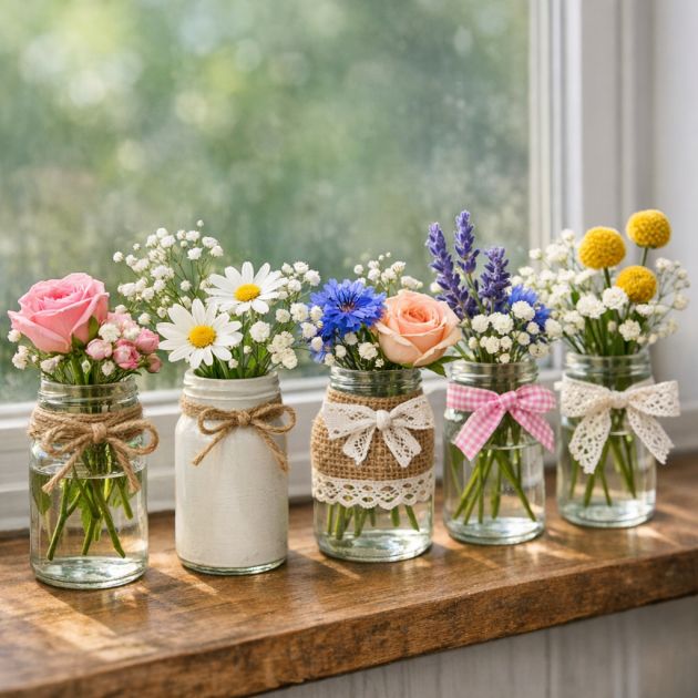 To add a personal touch, consider decorating the jars with twine, ribbon, or paint. You can also use them as part of a centerpiece for a rustic or vintage-themed event, providing a delicate and stylish aesthetic without the need for purchasing new vases.