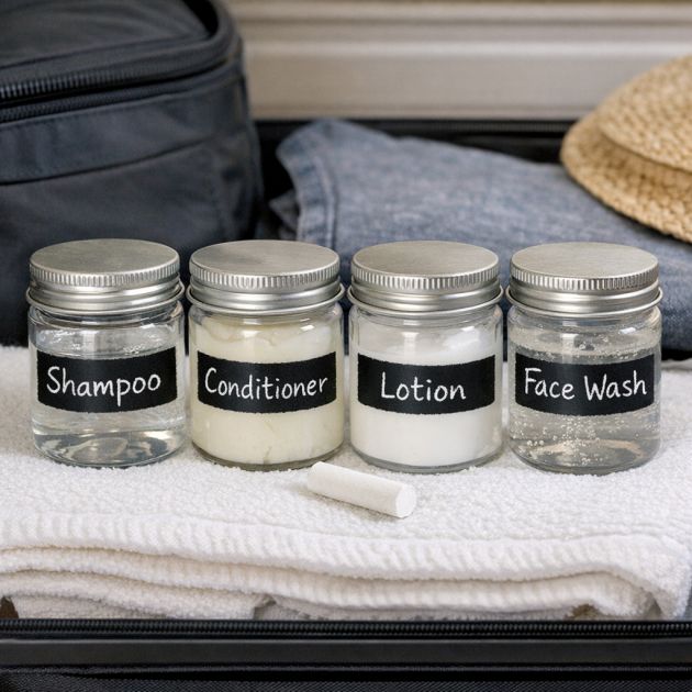 To make your travel kit even more convenient, consider attaching a small strip of chalkboard paint to the jars. This way, you can easily label and relabel contents as needed with chalk, making these jars not only reusable but also flexible for different trips and toiletries.