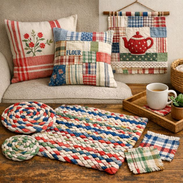 Get creative by using old dish towels to craft home décor items. Sew them into decorative pillow covers or use them to create fabric wall hangings. You can also cut them into strips and braid or weave them into rugs or coasters.
