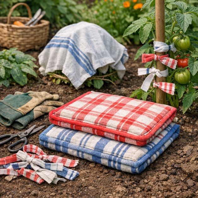 In the garden, old dish towels can serve multiple purposes. Cut them into strips to use as plant ties or to secure climbing plants. They can also be used as protective covers for delicate plants during cold nights.