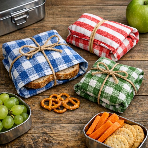For lunchbox wraps, cut the towels into larger squares, approximately 18x18 inches, and use them to wrap sandwiches and snacks. Secure the wraps with a piece of twine or a rubber band for an eco-friendly lunch solution.