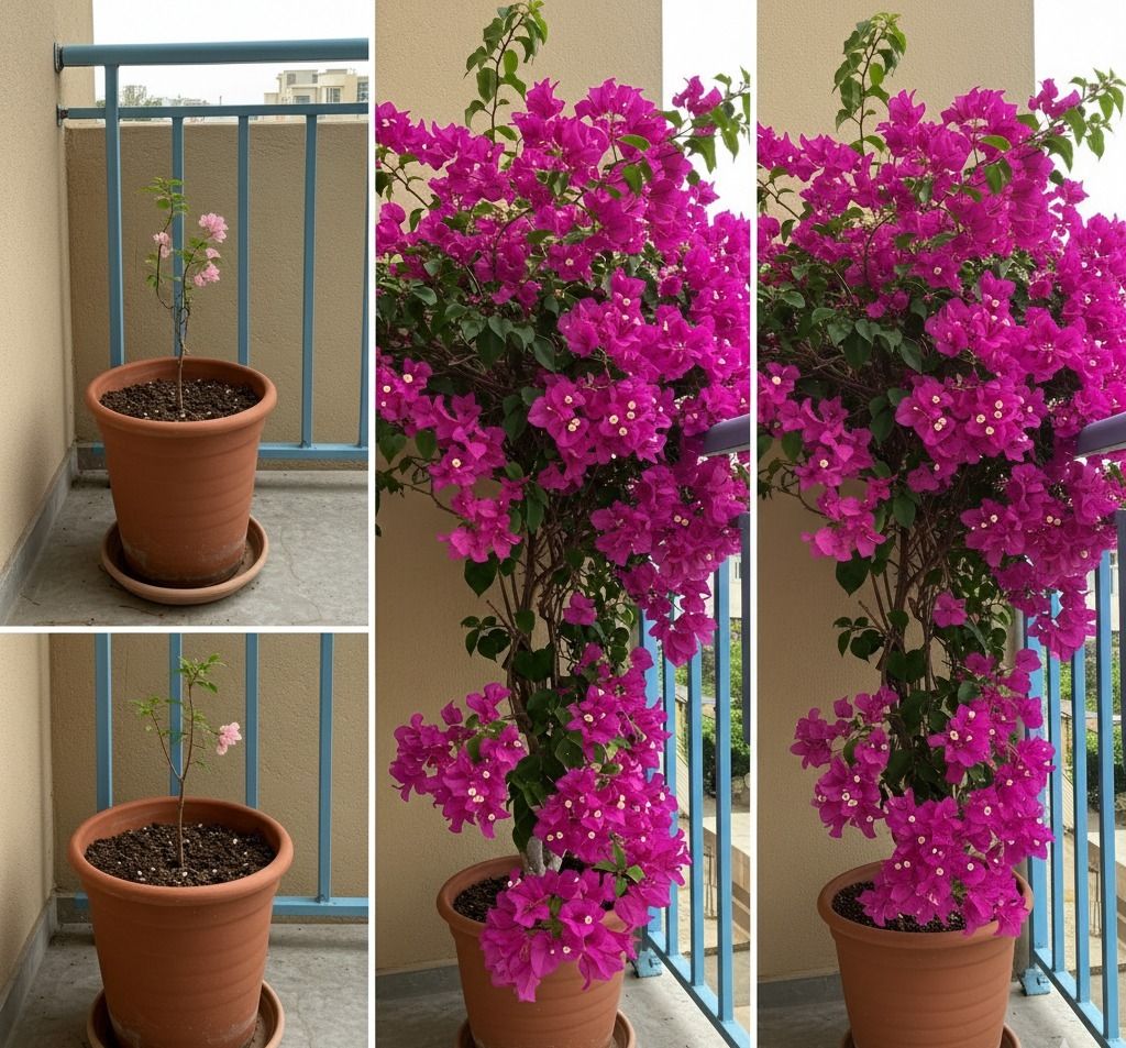 Bougainvillea thrives when slightly stressed—especially when it comes to watering. Overwatering leads to lush foliage but few flowers, while slight drought stress triggers blooming.