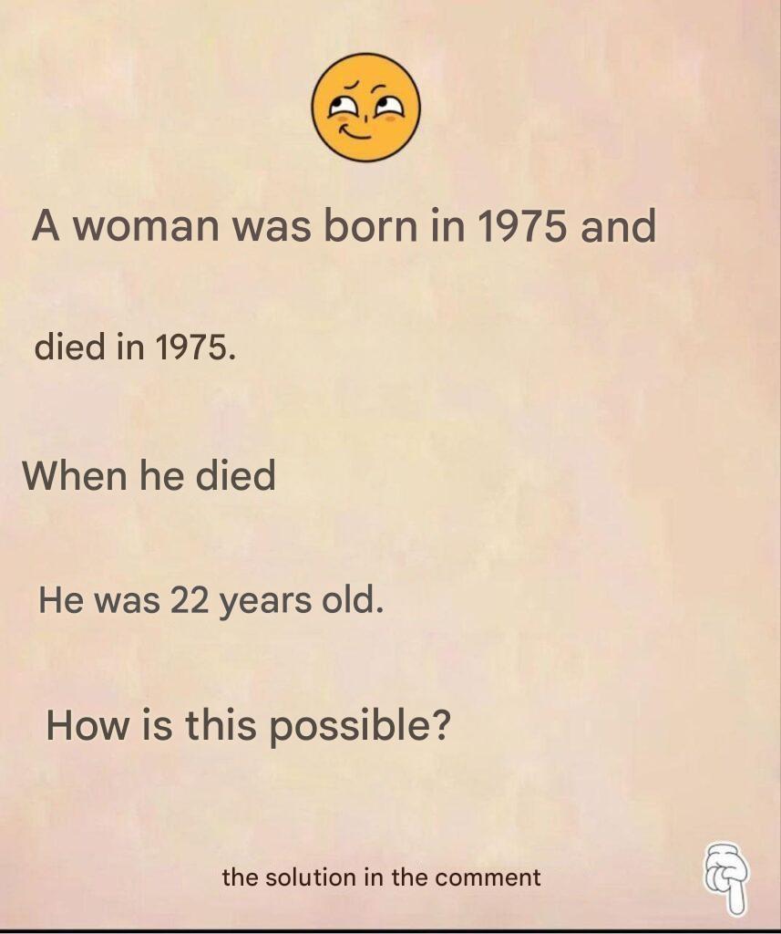 The opening sentence seems illogical: a woman was born and died in 1975, but would she have been 22? Unless you’re a time traveler (and even then!), it seems impossible. So naturally we come up with explanations. A typo? A different calendar? We complicate things... when the answer is much simpler than we think.