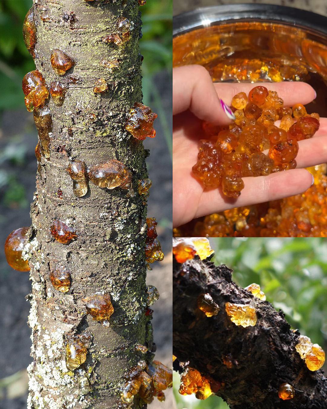 Peach tree resin, also known as Tao Jiao (桃胶) in Chinese, is a natural substance that comes from the bark of peach trees. In China, it’s considered a precious delicacy and has been used for hundreds of years, both as food and as traditional medicine. When soaked and cooked, this amber-like resin becomes soft and jelly-like, with no taste but many health powers.